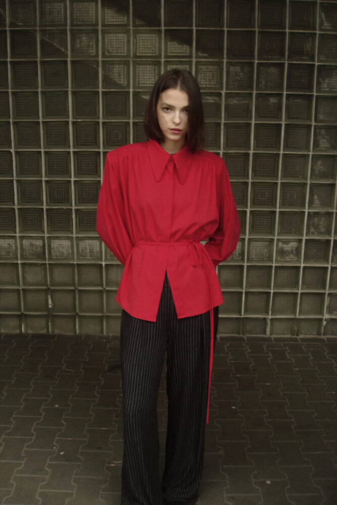 - Soczyście czerwona koszula o lejącej, przyjemnej tkaninie